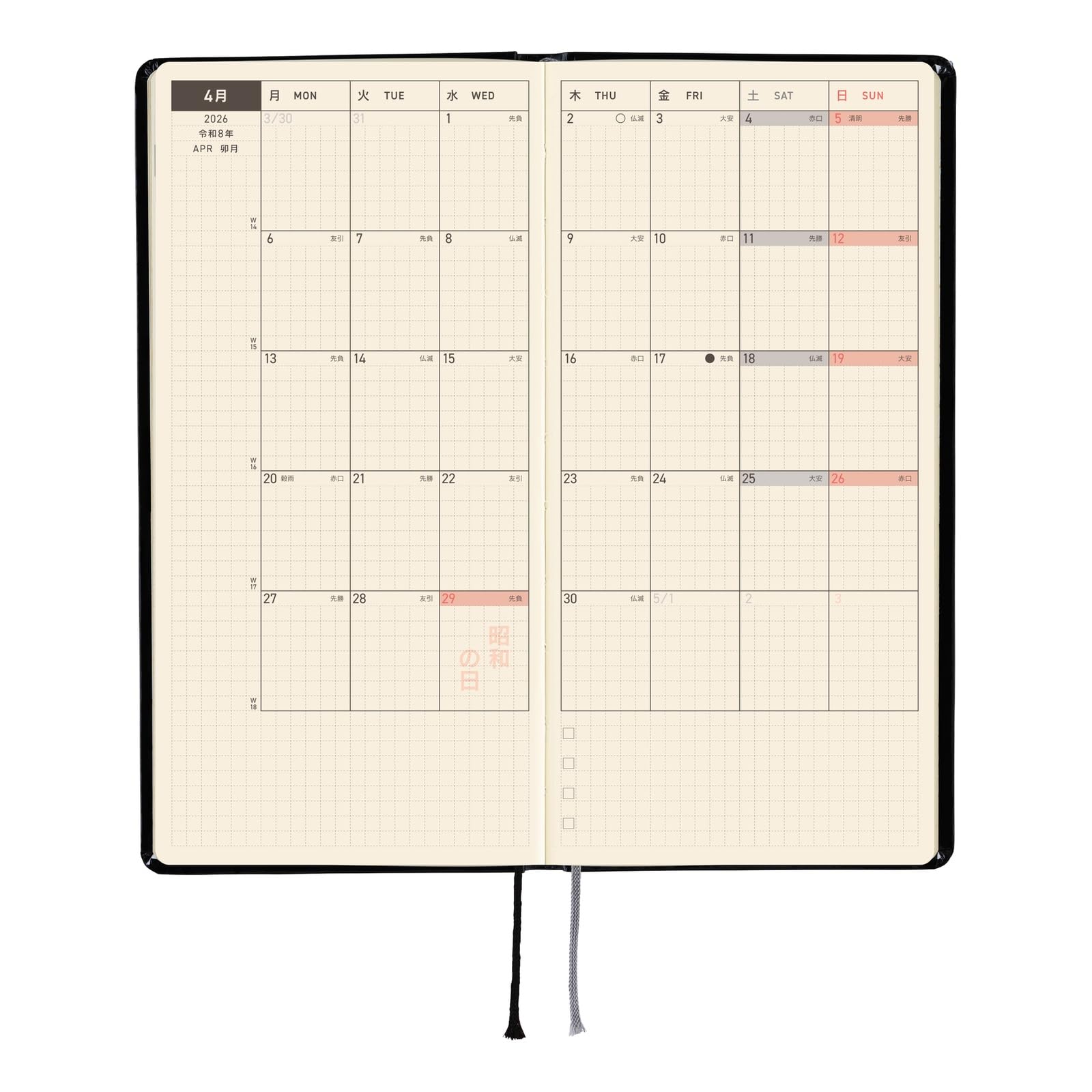 - COLLABORATION with YUMI KITAGISHI – The world created by Kitagishi in acrylic gouache draws you in, quietly making you imagine the stories or settings behind each piece for a special kind of wonder. Both nostalgic and exciting, her illustrations perfectly capture the charm of a picture book. The theme for this Weeks is a “White Cat’s Daily Life.” The year 2026 is foil-pressed in silver on the front cover and in pink on the spine, which shines in light.
