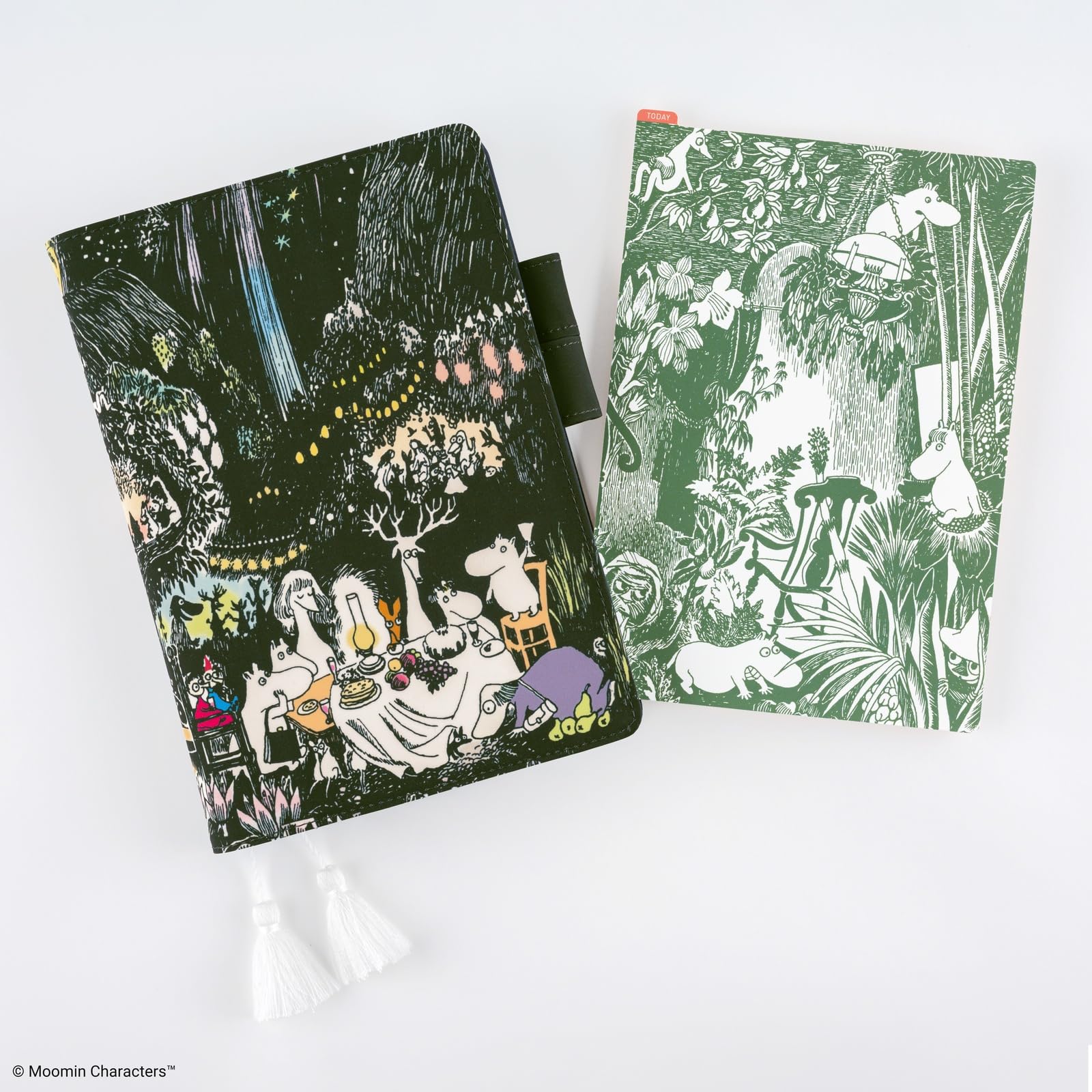 - COLLABORATION with MOOMIN – The pencil board collaborates with Moomin, the famous character from the novel "Finn Family Moomin troll." This illustration is from when the magic hat turns Moominhouse into a jungle, depicting Moomintrolls playing around on the front side. On the back side of the pencil board, Moominmamma's illustration is printed, who just woke up to find herself surrounded by white tiny flowers. (C) Moomin CharactersTM